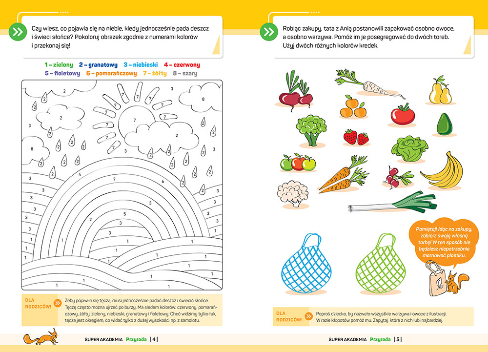 Ksi±¿eczka to prawdziwa przygoda w ¶wiecie przyrody, pe³na niesamowitych odkryæ i fascynuj±cych faktów. To nie tylko doskona³a zabawa, ale tak¿e mo¿liwo¶æ rozwijania wiedzy o otaczaj±cym nas ¶wiecie. Pod ka¿dym zadaniem przygotowali¶my dla rodziców propozycjê dodatkowej zabawy lub tematu do rozmowy z dzieckiem. To doskona³a propozycja dla wszystkich ma³ych mi³o¶ników przyrody!