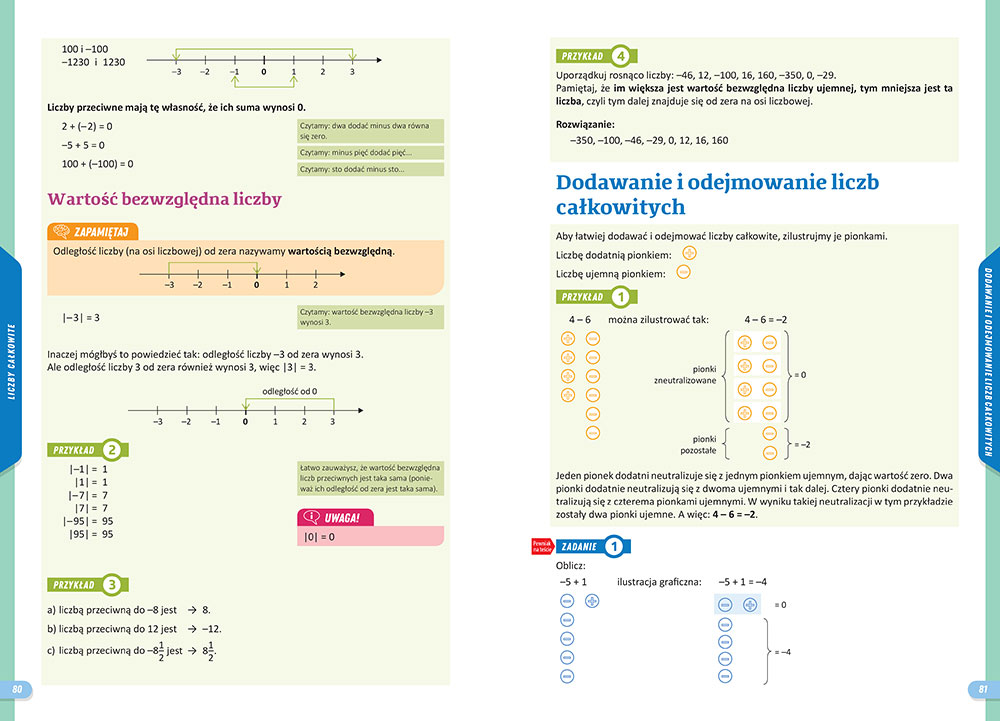 Każdy z tematów posiada szeroki wstęp teoretyczny wraz z przykładami oraz zadania rozwiązane krok po kroku z komentarzami tłumaczącymi tok działania. Znaczek „pewniak na teście” dodatkowo wskazuje zadania takiego typu, jakie najczęściej pojawiają się na sprawdzianach.