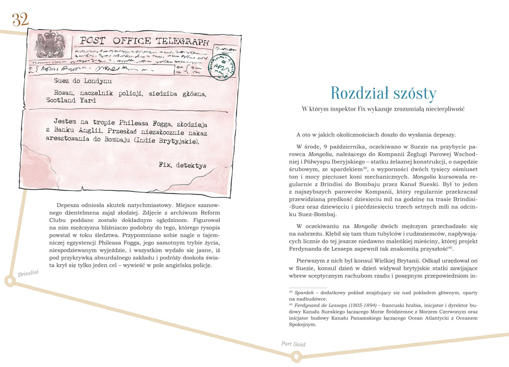 "W 80 dni dookoła świata" to fantastyczna powieść przygodowa, której akcja rozgrywa się pod koniec XIX wieku. Inne niż dziś są realia podróży. Fogg mimo to zawsze potrafił odnaleźć idealne połączenia i tak pokierować swoją wyprawą, aby dotrzeć o czasie do celu (...) Na kartach książki wciąż coś się dzieje, akcja jest bardzo wartka i zaskakująca. Na nudę czy monotonię na pewno narzekać nie można. A i samo wydanie prezentuje się bardzo okazale.