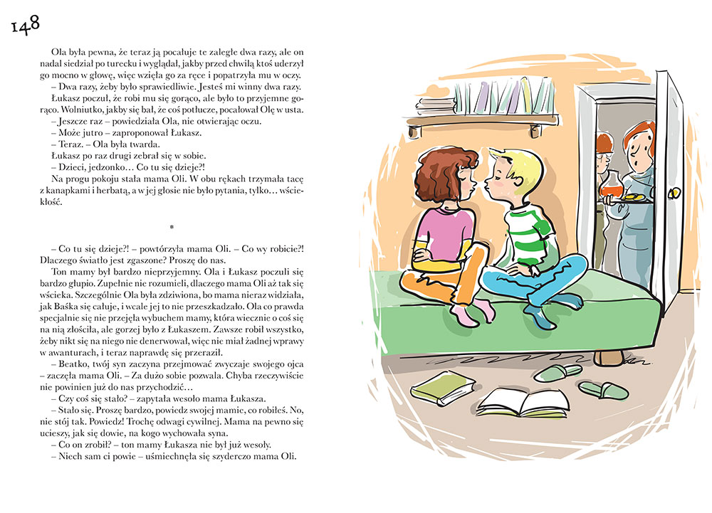 Ola i Łukasz mają po jedenaście lat, chodzą do piątej klasy i każde z nich wychowuje się w niepełnej rodzinie. Na początku wcale się nie lubią, nic nie łączy rozgadanej, odważnej, przebojowej Oli ze spokojnym, zamkniętym w sobie, nieśmiałym Łukaszem. Ich mamy znają się jeszcze ze szkoły, dlatego dzieci muszą zacząć spędzać razem więcej czasu - i powoli rodzi się między nimi przyjaźń, a potem pierwsza, nieśmiała miłość. Jak zareagują na to obie mamy? Czy bohaterowie mogą liczyć na ich wsparcie? Czy jest szansa, by to pierwsze uczucie przetrwało? I co z tym wszystkim mają wspólnego... 622 e-maile oraz rowery i pająki? Przeczytajcie!