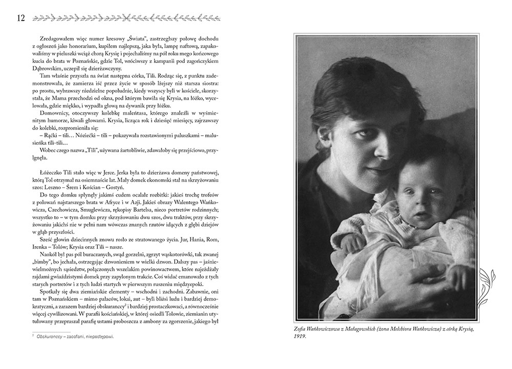 W charakterystyczny dla siebie sposób autor prezentuje barwne, ciekawe, pełne niespodzianek dwudziestolecie międzywojenne, będące swoistym zderzeniem polskiej tradycji z nowoczesnością i postępem, ale też trudne i niebezpieczne czasy drugiej wojny światowej i powstania warszawskiego, które na zawsze odcisnęło tragiczne piętno na rodzinie Wańkowiczów. Postacie zaprezentowane na tym tle są żywe, interesujące, wielowymiarowe, nakreślone bez prób idealizacji - i właśnie dlatego książka zaciekawia i nie pozwala pozostać obojętnym.