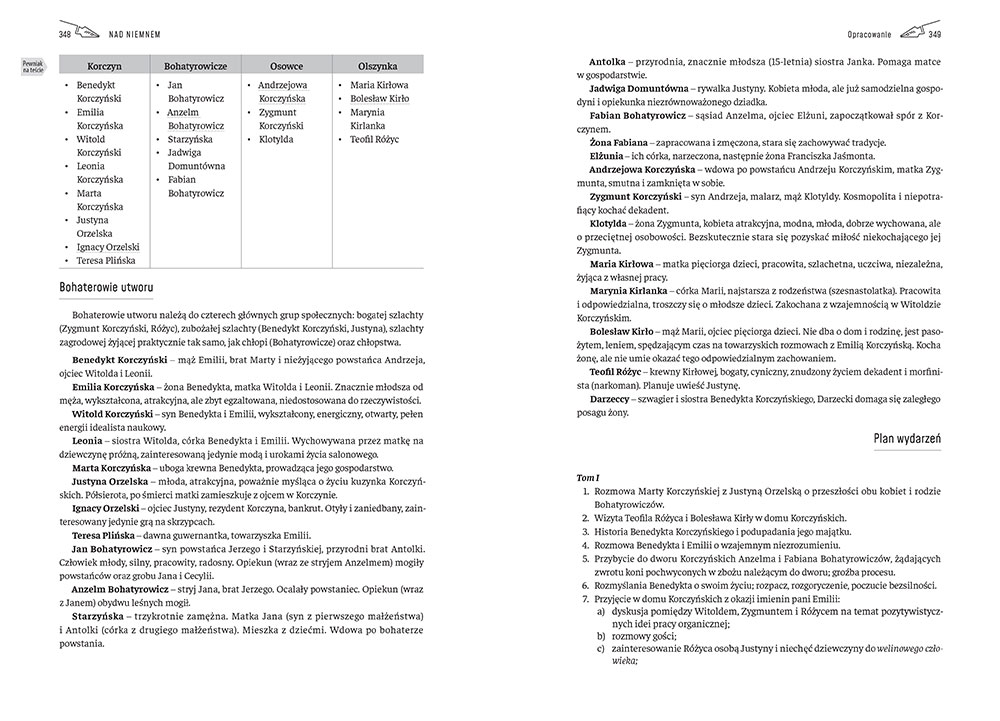 Ta książka - oprócz wciągającej i naprawdę ciekawej treści lektury - zawiera bardzo przydatne dla ucznia opracowanie oraz zestaw podpowiedzi i komentarzy, które pomogą bez wysiłku zorientować się w czasie i miejscu akcji, zapamiętać podstawowe wydarzenia i zapoznać się z charakterystyką poszczególnych bohaterów. I co najważniejsze - dzięki pewniakom znaleźć odpowiedzi na pytania, które pojawiają się w testach i które najczęściej zadają nauczyciele podczas omawiania Nad Niemnem.