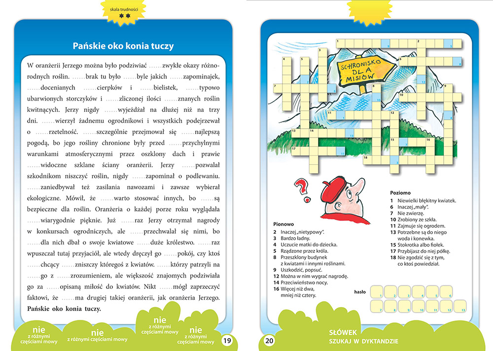 Jak ja siê cieszê, ¿e teraz wymy¶laj± takie rzeczy! Gdy ja by³am ma³a, nie by³o takich fajnych i kolorowych pomocy szkolnych (...) Teksty zawarte wewn±trz to takie fajne opowiadania, w których za ka¿dym razem odnajdziemy znane przys³owie. W sumie trzeba przyznaæ, ¿e dziêki nim dzieciaczki nie tylko mog± æwiczyæ zasady ortograficzne, ale równie¿ bez k³opotu zrozumiej± sens ka¿dego z tych przys³ów. Takie dwa w jednym, wed³ug mnie bardzo fajny pomys³ :)